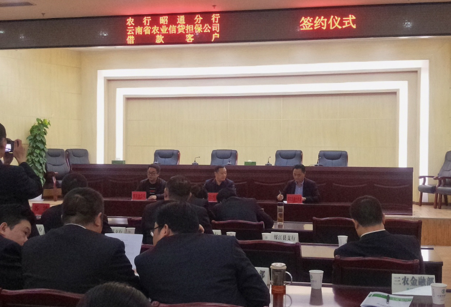 2018年4月17日,云南省農(nóng)業(yè)信貸擔保有限公司昭通辦事處與中國農(nóng)業(yè)銀行昭通分行共同舉行借款客戶簽約儀式。農(nóng)業(yè)銀行昭通分行黨委書記蔣學才,分行各部門負責人、各縣區(qū)行長、信貸經(jīng)理,農(nóng)業(yè)信貸擔保公司昭通辦事處人員及借款客戶參加了此次簽約儀式。
