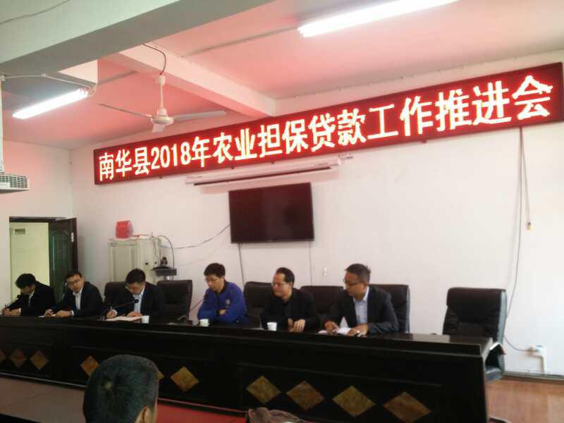 為準(zhǔn)確對(duì)接客戶,加快業(yè)務(wù)落地,2018年3月27日,公司楚雄辦事處聯(lián)合楚雄州南華縣農(nóng)業(yè)局組織召開(kāi)南華縣2018年農(nóng)業(yè)擔(dān)保貸款工作推進(jìn)會(huì)。南華縣70戶養(yǎng)殖大戶、南華縣農(nóng)商行、郵儲(chǔ)銀行南華縣龍城支行、農(nóng)行南華縣支行、南華興福村鎮(zhèn)銀行主要負(fù)責(zé)同志受邀參加會(huì)議。