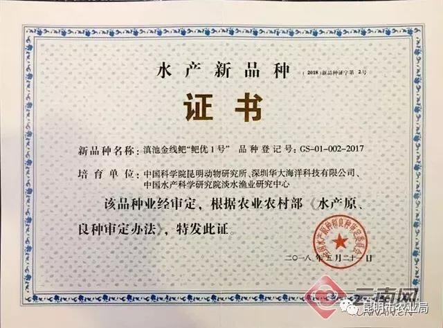 日前,由中國(guó)科學(xué)院昆明動(dòng)物研究所聯(lián)合深圳華大海洋科技有限公司、中國(guó)水產(chǎn)科學(xué)研究院淡水漁業(yè)研究中心研發(fā)培育的新品種——滇池金線鲃“鲃優(yōu)1號(hào)”,正式獲農(nóng)業(yè)農(nóng)村部的官方認(rèn)定,在水產(chǎn)種業(yè)發(fā)展論壇上獲得農(nóng)業(yè)農(nóng)村部頒發(fā)的水產(chǎn)新品種證書。這標(biāo)志著滇池金線鲃?dòng)型麑?shí)現(xiàn)規(guī)?;虡I(yè)養(yǎng)殖。