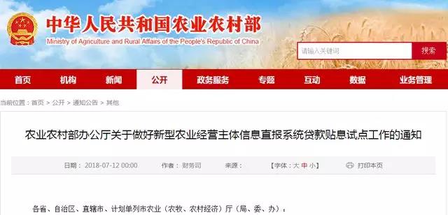 為加快推進(jìn)新型農(nóng)業(yè)經(jīng)營(yíng)主體信息直報(bào)系統(tǒng)(以下簡(jiǎn)稱直報(bào)系統(tǒng))應(yīng)用實(shí)施,幫助緩解新型農(nóng)業(yè)經(jīng)營(yíng)主體貸款難、貸款貴問題,我部將以直報(bào)系統(tǒng)為載體開展貸款貼息試點(diǎn)?,F(xiàn)將有關(guān)事宜通知如下。
