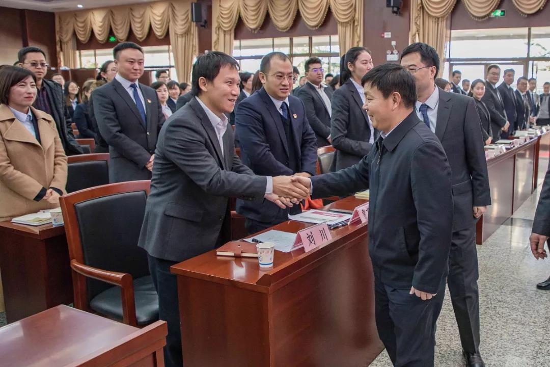 在總結(jié)會(huì)會(huì)場(chǎng),張巖松廳長(zhǎng)與省農(nóng)擔(dān)公司優(yōu)秀員工親切握手,一一詢問大家的工作情況。張巖松廳長(zhǎng)對(duì)2018年省農(nóng)擔(dān)公司取得的不俗成績(jī)給予了充分肯定。他表示,全體農(nóng)擔(dān)員工按照省委、省政府的安排部署,開拓創(chuàng)新、銳意進(jìn)取,機(jī)構(gòu)覆蓋全省16個(gè)州市,業(yè)務(wù)覆蓋118個(gè)縣,圓滿完成新增涉農(nóng)貸款擔(dān)保50億的任務(wù),是大家共同努力、辛勤工作的成果,值得鼓勵(lì)和祝賀。