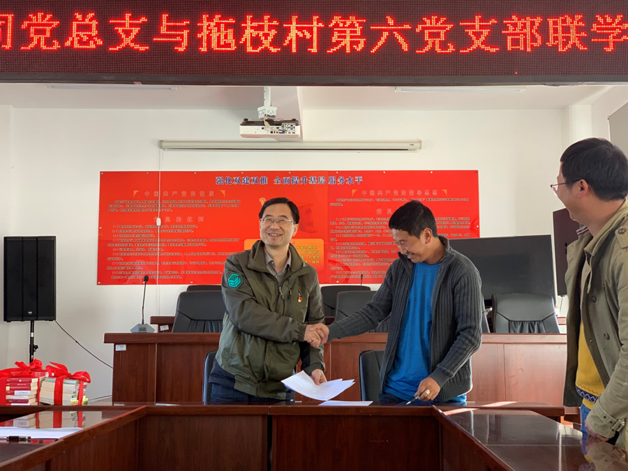 支部結對雙促進,共建共享強黨建。自公司黨組織成立以來,嚴格按照省財政廳機關黨委扶貧工作要求,農擔公司黨(總)支部與永春鄉(xiāng)拖枝村第六黨支部開展了支部共建“雙一雙”學習教育、經驗交流,10月22日公司黨總支書記郭影與拖枝村第六簽訂了黨支部結對共建協(xié)議書,并捐贈黨建和農業(yè)科技方面讀書,把黨建工作與精準扶貧工作相結合,充分發(fā)揮農擔公司黨組織全心支農、為農、惠農、不脫農的先鋒模范作用,以黨建推動脫貧攻堅,以脫貧攻堅促進支部黨建,促進了扶貧工作與黨建工作的良性互動。