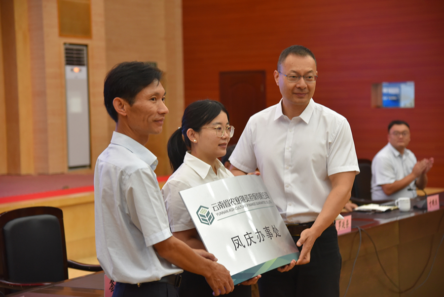 為進一步助推鳳慶縣農業(yè)產業(yè)振興,發(fā)揮農擔政策性擔保作用,9月15日,云南省農擔公司鳳慶辦事處授牌儀式在鳳慶縣會展中心報告廳順利舉行。公司總經理李世偉、戰(zhàn)略發(fā)展部經理蔡菲、業(yè)務發(fā)展部副經理寸明杰,臨滄市人民政府金融辦公室主任羅廷榮、鳳慶縣委常委、縣人民政府常務副縣長陳正華、臨滄市農業(yè)農村局副局長翟國軍等領導出席會議。鳳慶縣各政府部門及鳳慶縣13個鄉(xiāng)(鎮(zhèn))人民政府分管農業(yè)農村工作的領導,縣人行及各金融機構主要負責人參加會議。