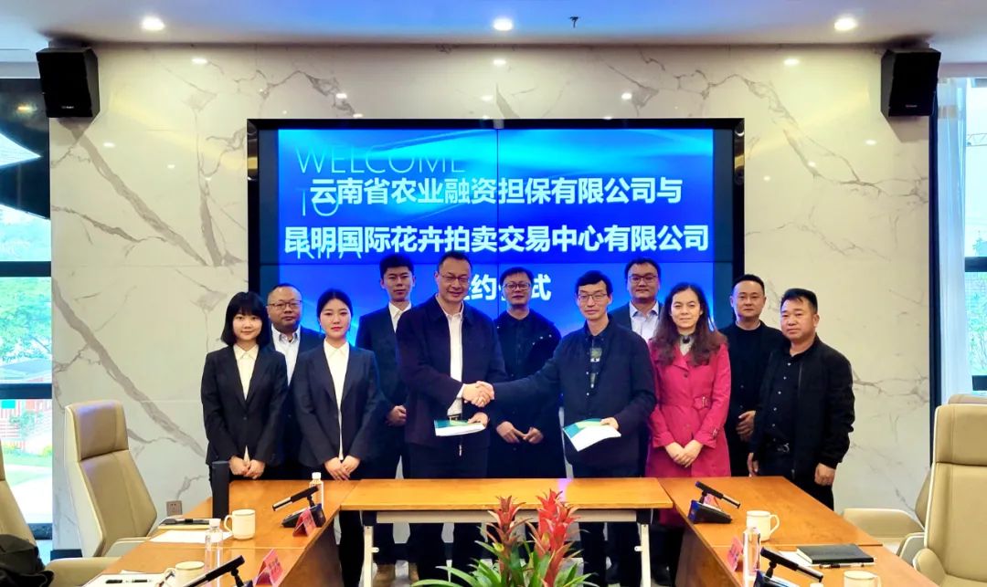 4月19日,云南農(nóng)擔公司與昆明國際花卉拍賣交易中心《戰(zhàn)略合作協(xié)議》簽署儀式在呈貢斗南花拍中心舉行。農(nóng)擔公司總經(jīng)理李世偉,花拍中心常務副總經(jīng)理馮懷斌、副總經(jīng)理管勇出席儀式并講話。
