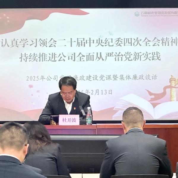 2月13日,公司以“現(xiàn)場+視頻”方式召開全體職工會(huì)議,公司黨總支部書記、董事長杜開波同志為全體職工講授黨風(fēng)廉政建設(shè)黨課暨集體廉政談話。